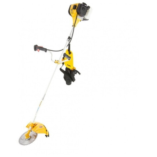 тип триммера: переносной мощность ДВС 2.5 л.с. двухтактный двигатель емкость топливного бака 0.85 л ширина скашивания 42 см режущий элемент триммера: леска и нож, леска 3 мм конструкция штанги: прямая форма рукояти: Т-образная (велосипедная) плечевой ремень наличие колес: нет вес 7.2 кг