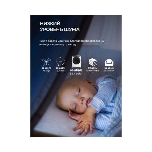 | Список программ | Быстрая/Деликатная/Детские вещи/Обработка паром/Отжим/Полоскание и отжим/Смешанные ткани/Спортивная одежда/Хлопок/Хлопок ЭКО/Шерсть/ЭКО |