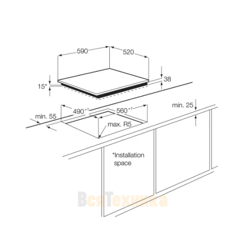 | Габариты ниши для встраивания (Ш х Г), см: | 56 |