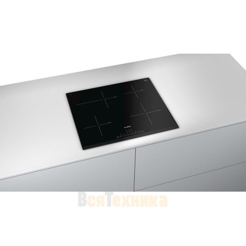Варочная панель Bosch PIF651FB1E имеет стандартный для встраивания размер 60 см (ширина). Она работает от стандартной сети 220-240 В. Управление — сенсорное, с цифровой индикацией. В комплекте поставляется подробная инструкция по установке и эксплуатации.