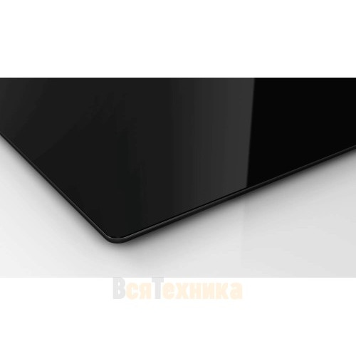 Панель выполнена в классическом черном цвете из прочного закаленного стекла Schott Ceran, которое отличается исключительной устойчивостью к механическим воздействиям, перепадам температур и загрязнениям. Гладкая поверхность без рамки визуально расширяет пространство и легко вписывается в любой стиль кухни — от хай-тека до классики. Сенсорное управление, интегрированное в поверхность, выглядит минималистично и обеспечивает точный контроль над процессом готовки.