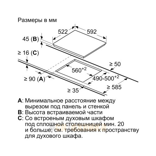 Панель выполнена в элегантном черном стекле, которое подчеркивает статус и стиль вашей кухни. Она предназначена для встраивания в столешницу стандартного размера (вырез 56x49 см). Сенсорное управление с цифровой индикацией выглядит современно и минималистично.