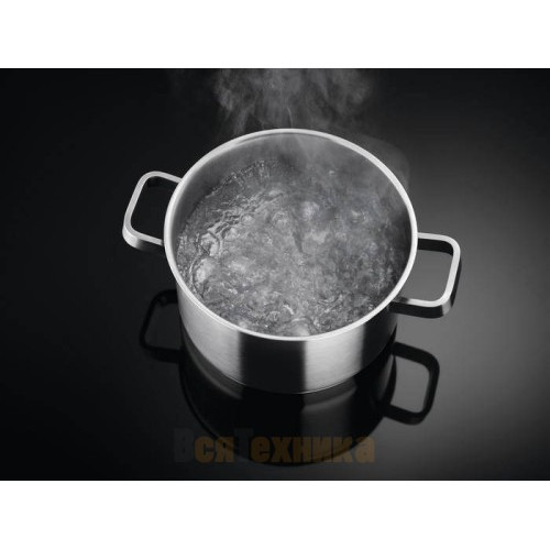 Все зоны нагрева оснащены функцией «Автоматическое закипание». После достижения точной температуры кипения мощность автоматически снижается до заданного уровня, предотвращая выплескивание жидкости.