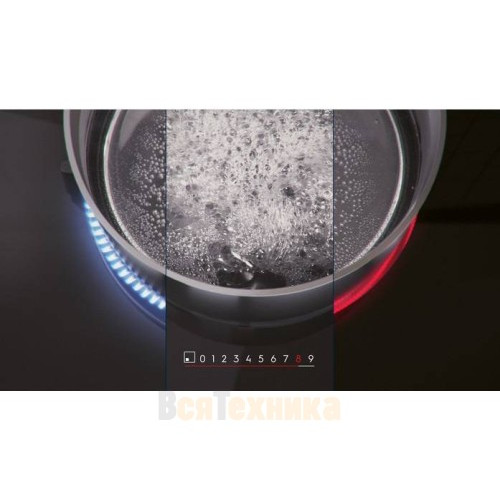 - Мощная зона Booster: Функция «Бустер» позволяет на короткое время перенаправить мощность с соседней конфорки на выбранную, обеспечивая максимально быстрый нагрев, когда это необходимо.