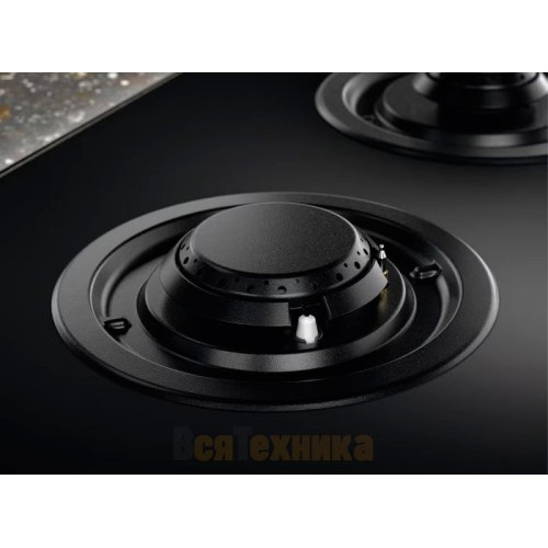 - Гибридная технология (Gas-on-Glass и индукция): Уникальное сочетание двух мощных контуров. Слева — современная индукционная зона для быстрого и точного нагрева. Справа — газовая зона с системой Gas-on-Glass, где элегантные решётки уступили место стильной стеклокерамической поверхности, за которой легко ухаживать.