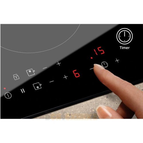 Варочная панель выполнена в классическом черном цвете с элегантной стеклокерамической поверхностью. Минималистичный дизайн, скрытые индикаторы и лаконичные линии делают ее универсальным решением для кухни в любом стиле — от хай-тек до классики. Компактные размеры и возможность встраивания позволяют легко интегрировать ее в кухонную столешницу.
