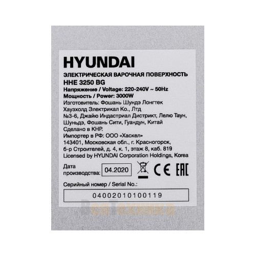 Варочная панель электрическая Hyundai HHE 3250 BG черный