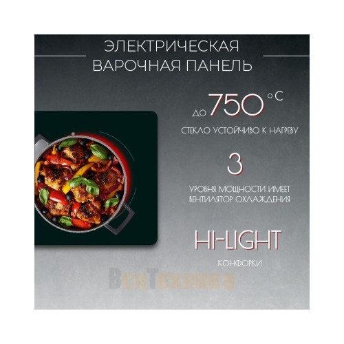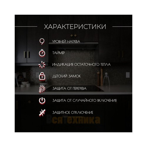 | Преимущества | Сенсорное управление,Детский замок,9 уровней нагрева,Таймер 99 минут,Индикация остаточного тепла,Защитное отключение |