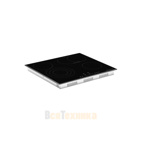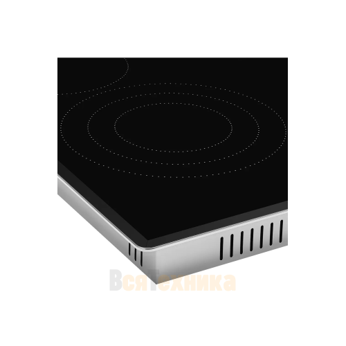 Панель выполнена в классическом черном цвете из прочного закаленного стеклокерамики, которое не только эффектно выглядит, но и отличается высокой устойчивостью к механическим воздействиям и перепадам температур. Гладкая поверхность без рамки (frameless design) легко вписывается в любой стиль кухни — от хай-тека до классики, обеспечивая бесшовную интеграцию в столешницу. Сенсорное управление, расположенное на передней части панели, делает интерфейс минималистичным и простым в уходе.