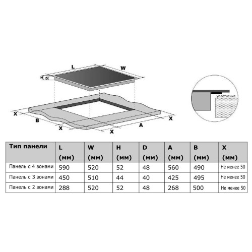 | Размеры ниши для встраивания (ШхГ) (см) | 56 x 49 |