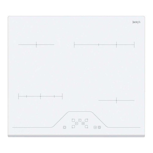 Варочная поверхность Jacky’s JH MW67 выполнена в универсальном белом цвете из стеклокерамики от немецкой компании «Chott», конфорки отмечены тёмно-серой штриховкой.