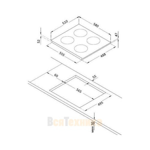 | Габариты ниши для встраивания (Ш х Г), см | 56.5 х 49.5 |