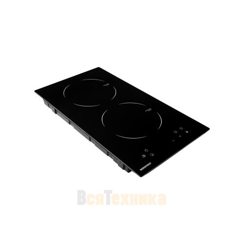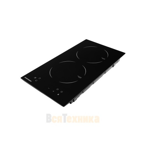 Варочная поверхность выполнена из прочной стеклокерамики, устойчивой к механическим воздействиям и перепадам температур. Она рассчитана на стандартную посуду с ферромагнитным дном (проверяется магнитом). Модель имеет встраиваемый монтаж (вырез в столешнице 280x490 мм) и работает от стандартной сети 220 В.