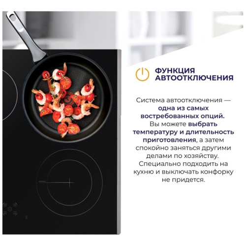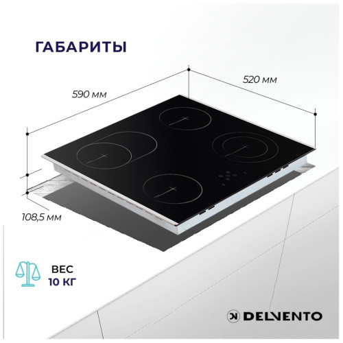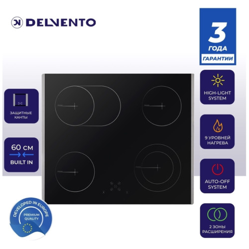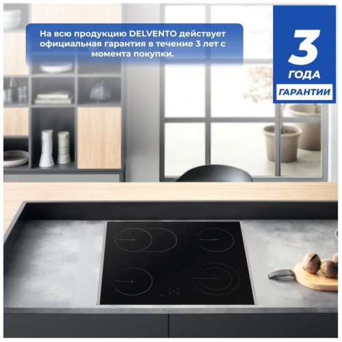Электрическая варочная панель DELVENTO V60D24S011 – это стильно выглядящий, функциональный, удобный прибор, который будет верным и незаменимым помощником любой хозяйке на месте ее творения. В варке предусмотрены 4 конфорки с 9 мощностями нагрева, так что можете готовить на них любые блюда, контролируя уровень нагрева. Также это защитит Вас от выкипания жидкости и сгорания Вашего блюда, а индикатор остаточного тепла сигнализирует, когда конфорки окончательно остынут. Варочная поверхность имеет сенсорное управление, а для полной безопасности работы оснащена кнопкой блокировки от детей, а также защитным отключением конфорок. Приятного аппетита! Основные характеристики: • Кол-во конфорок – 4 • Материал панели - Закаленное стекло быстрого нагрева Fast Heating Glass • 9 уровней мощности • 2G Indication - индикация включения, индикаторы остаточного тепла • Auto-off System - система автоотключения и защиты от детей • Цвет – чёрное стекло • Габариты панели - 11х60х52 см • Габариты встраивания - 5,7х56х49 см • Размеры конфорок: 24х18х18х8