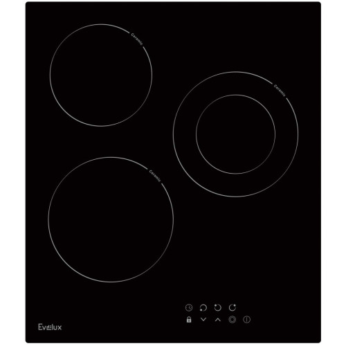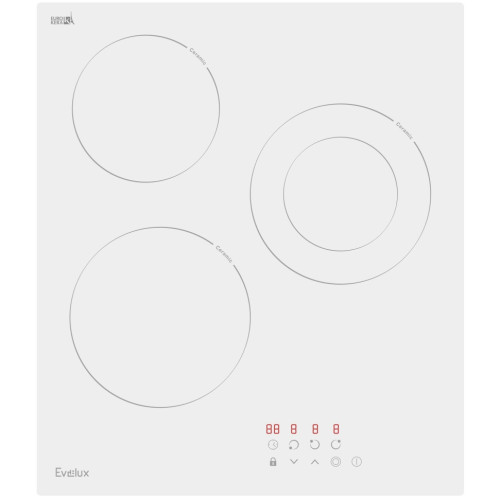 Управление варочной поверхности за счет сенсорных кнопок облегчает процесс приготовления. Особенно актуально продуманное расположение и световая индикация кнопок. «Hi-light» Зоны нагрева Evelux оборудованы современными нагревательными элементами Hi-light. Конфорка достигает установленной рабочей температуры буквально за считанные секунды, позволяет плавно регулировать мощность. Таймер Электронный таймер поможет установить время продолжительности приготовления, после которого варочная поверхность остановит свою работу. Кроме этого можно установить акустический сигнал, который подается по истечению заданного времени даже, если варочная панель не находится в режиме приготовления. Двухконтурная зона расширения Зоны расширения дают возможность использовать посуду разного диаметра и экономить электроэнергию, нагревая только тот участок варочной поверхности, который Вам нужен. Теперь у Вас есть два выбора нагрева конфорки. Автоматическое отключение Специальная функция, которая автоматически отключает варочную панель, если пользователь забыл это сделать сам. Время экстренного отключения панели или включенных конфорок зависит от заранее выбранного шага нагрева. Можно быть полностью уверенным в безопасности приготовления. Индикация остаточного тепла Световой индикатор у варочных поверхностях Evelux горит, пока температура конфорки не понизится до 60°С. Кроме безопасности использования, по световому индикатору можно понять, достаточно ли остыла варка для последующей чистки или нет. Функция «Защита детей» Evelux подумал о безопасности ваших малышей на кухне! Включив функцию «Защита детей» панель управления заблокируется, и маленький непоседа не сможет включить поверхность, это позволит быть уверенным, что не случится беды с подрастающими поварятами.
