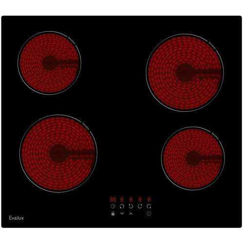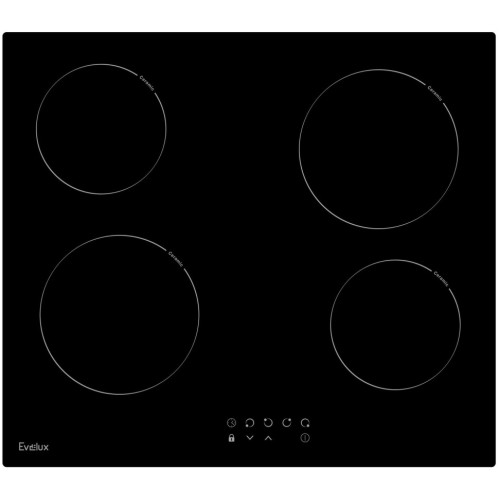 Сенсорное управление «Touch Control» Управление варочной поверхности за счет сенсорных кнопок облегчает процесс приготовления. Особенно актуально продуманное расположение и световая индикация кнопок. «Hi-light» Зоны нагрева Evelux оборудованы современными нагревательными элементами Hi-light. Конфорка достигает установленной рабочей температуры буквально за считанные секунды, позволяет плавно регулировать мощность. Таймер Электронный таймер поможет установить время продолжительности приготовления, после которого варочная поверхность остановит свою работу. Кроме этого можно установить акустический сигнал, который подается по истечению заданного времени даже, если варочная панель не находится в режиме приготовления. Автоматическое отключение Специальная функция, которая автоматически отключает варочную панель, если пользователь забыл это сделать сам. Время экстренного отключения панели или включенных конфорок зависит от заранее выбранного шага нагрева. Можно быть полностью уверенным в безопасности приготовления. Индикация остаточного тепла Световой индикатор у варочных поверхностях Evelux горит, пока температура конфорки не понизится до 60°С. Кроме безопасности использования, по световому индикатору можно понять, достаточно ли остыла варка для последующей чистки или нет. Функция «Защита детей» Evelux подумал о безопасности ваших малышей на кухне! Включив функцию «Защита детей» панель управления заблокируется, и маленький непоседа не сможет включить поверхность, это позволит быть уверенным, что не случится беды с подрастающими поварятами.