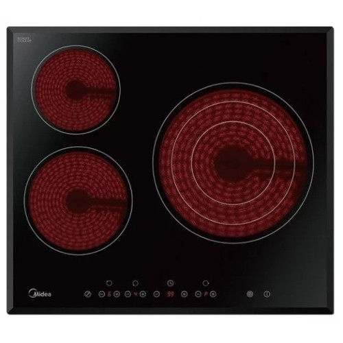 Особенным шармом обладают варочные поверхности со скошенными углами вместо рамки. Варочная панель MIDEA MCH63557F независимого типа установки как будто парит над основной рабочей зоной гарнитура. Три электрические конфорки, как и основная область, выполнены из надежной стеклокерамики. Этот материал отличается простотой и легкостью ухода и мытья. Три конфорки расположены на максимальном удалении друг от друга, обеспечивая возможность готовить еду одновременно на всех, при этом мощность каждой в отдельности не уменьшается. Варочная панель MIDEA MCH63557F имеет электронную панель управления по переднему краю. Сенсоры откликаются на каждое касание даже холодных и влажных рук. Дисплей позволяет устанавливать таймер для автоматического выключения панели и выбирать мощность нагрева (от 1 до 9). Одна конфорка имеет расширенную зону нагрева. Еще есть защита от детей, блокировка случайного включения и индикатор остаточного тепла.