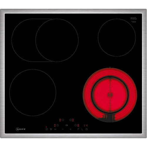 Варочная панель Neff T16SDF9L0 — превосходный выбор для любителей кулинарного искусства, ценящих качество и функциональность. Произведенная в Германии, эта техника обладает высокими стандартами качества и надежности. Имеет 12-месячную гарантию, что подтверждает ее прочность и долговечность. Элегантный дизайн прибора подчеркивает его современный облик. Черный цвет стеклокерамической поверхности и рамка из нержавеющей стали создают стильный и современный образ, который гармонично впишется в любой интерьер. Компактные размеры (высота 4.8 см, ширина 58.3 см, глубина 51.3 см) позволяют установить устройство над столешницей, экономя пространство на кухне. Модель оснащена четырьмя конфорками различной мощности и размера для разнообразного приготовления пищи. Возможность выбора из 17 уровней мощности дает возможность точной настройки температуры для каждого блюда. Режим PowerBoost позволяет быстро нагревать пищу, а функция поддержания тепла поможет сохранить готовое блюдо теплым до подачи на стол. Прибор оснащен сенсорными переключателями TouchControl, что делает управление интуитивно понятным и удобным. На дисплее отображается выбранный уровень нагрева, а также работает таймер с отключением и звуковым сигналом обратного отсчета. Индикация включения и остаточного тепла обеспечивает безопасность использования. Варочная панель Neff T16SDF9L0 обладает множеством функций защиты. Главный выключатель, защитное отключение и блокировка от детей предотвращают случайное включение и обеспечивают безопасность для всей семьи. Кратковременная блокировка Cleaning-пауза позволяет безопасно очистить поверхность во время использования устройства. Эта модель подключается к электрической сети напряжением 220-240 В и частотой 50-60 Гц. Мощность подключения составляет 8.3 кВт, что обеспечивает высокую производительность и быстрый нагрев конфорок. Ключевые преимущества: * Современный дизайн и высокое качество производства * Широкий выбор уровней мощности и функций защиты * Удобное и безопасное управление с помощью сенсорных переключателей