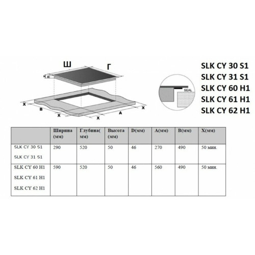 Ширина для встраивания (см) 56