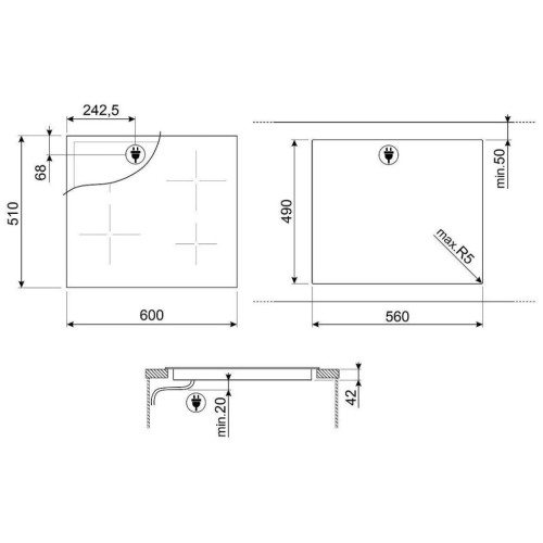 Общие характеристики - Тип: электрическая - Тип подключения: независимая - Материал: стеклокерамика - Края панели: обработанные без рамки - Цвет: чёрный Управление - Тип управления: электронное - Регуляторы мощности: сенсорные - Количество степеней мощности: 9 - Дисплей: да - Таймер: таймер с акустическим сигналом, таймер выключения - Таймер конфорок: да - Главный выключатель: да - Расположение панели управления: спереди Индикация - Индикация включения: да - Индикация уровня мощности: да - Индикация остаточного тепла: для варочных зон - Индикатор времени приготовления: да Конфорки - Количество конфорок: 3 - Тип нагрева: Hi-Light - Количество Hi-Light конфорок: 3 - Мощность задней левой конфорки: 1800 Вт - Мощность передней левой конфорки: 1200 Вт - Мощность правой конфорки: 2400 Вт - Размер левой задней конфорки: 18 см - Размер левой передней конфорки: 14.5 см - Размер правой конфорки: 21-27 см - Количество зон расширения: 1 Безопасность - Блокировка управления: да - Самодиагностика неисправности: да - Защита от детей: да - Отключение при проливе жидкости: да - Отключение при перегреве: да - Защитное отключение: да - Защита от перегрева: да Мощность и энергопотребление - Мощность подключения: 5400 Вт - Суммарная мощность конфорок: 5400 Вт - Кабель питания: да - Длина кабеля: 1.3 м Дополнительная информация - Тип встраивания: врезная Габариты и вес - Высота: 6.3 см - Ширина: 60 см - Глубина: 51 см - Высота встраивания: 42 мм - Ширина встраивания: 560 мм - Глубина встраивания: 490 мм - Вес: 7.8 кг