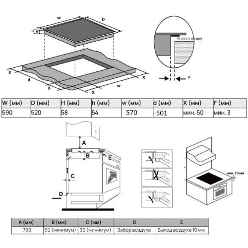 Ширина для встраивания (см) 56