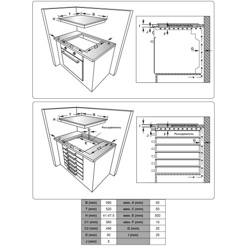 Ширина для встраивания (см) 56