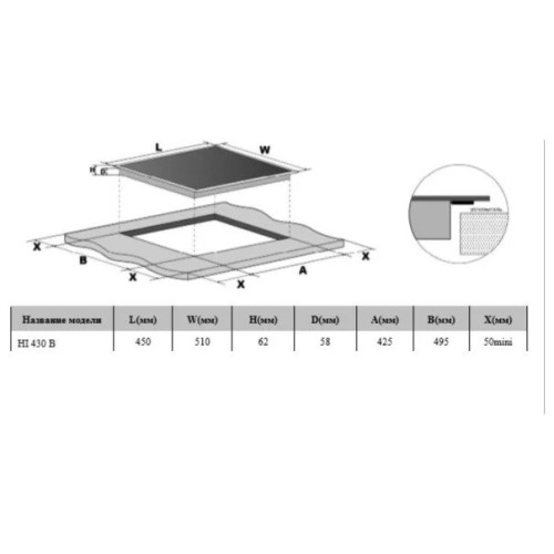 | Безопасность | защитное отключение конфорок, индикатор остаточного тепла, кнопка блокировки панели |