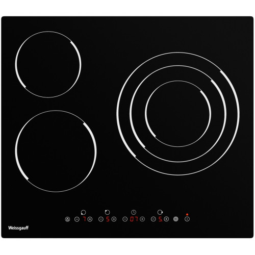 Варочная панель с трехконтурной зоной нагрева, исполненная в черной стеклокерамике Vitro Ceramic Glass - это идеальное сочетание недорогой цены и расширенных возможностей в одной одной модели. Трехконтурная зона расширения в правой конфорке, позволяющая адаптировать область нагрева как под крупную сковороду, так и под небольшую кастрюлю. Сенсорное управление One Touch, современное и оперативно реагирующее на ваши прикосновения с первого раза, даже в том случае, если руки холодные или влажные. 9 уровней мощности - с ними вы сможете подобрать подходящую температуру для приготовления практически любого блюда. Таймер до 99 минут дает вам возможность запрограммировать время выключения любой конфорки, с точностью до минуты. Максимальная мощность подключения 5700 Вт - делает данную модель по-настоящему мощной, позволяя вам готовить на всех конфорках одновременно, без потерь эффективности каждой рабочей зоны. Защитное автоотключение - это дополнительный уровень безопасности, который гарантирует высокую степень защиты для вас и вашего дома, обеспечивая самостоятельное отключение конфорки. Индикация остаточного тепла, сообщающая вам о том, когда прикасаться к конфорке уже безопасно, а когда - еще нет, ведь в течение некоторого времени после выключения, поверхность варочной панели все еще может оставаться горячей. Блокировка от детей, благодаря которой вы всегда сможете избежать ненужных нажатий на элементы управления, например, во время уборки варочной панели или, чтобы предотвратить её незапланированное включение детьми. Обращаем внимание, что при выключении и последующем повторном включении варочной панели блокировка панели сохранится до тех пор, пока не будет отключена пользователем вручную путем удержания кнопки блокировки в течение нескольких секунд. Дизайн конфорок Glide Zone, наполняющий вашу кухню ощущением изящества и высокого стиля, благодаря которому процесс готовки будет доставлять еще больше эстетического удовольствия. Диаметры рабочих зон 16,5 см (верхняя левая), 20 см (нижняя левая) и 14/21/30 см (правая трехконтурная) - делают удобной работу как с посудой малого размера, так и с по-настоящему крупными кастрюлями и сковородами. Стеклокерамика Vitro Ceramic Glass от одного из лучших мировых производителей - это гарантия действительно высоких показателей прочности, устойчивости к царапинам и высоким температурам, благодаря чему ваша варочная панель будет радовать вас долгие годы.
