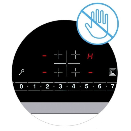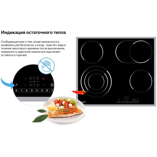 Безопасность защитное отключение конфорок, индикатор остаточного тепла, кнопка блокировки панели