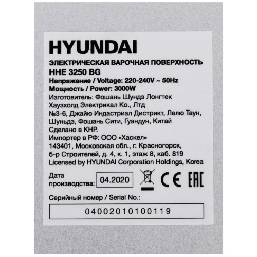 Каждый продукт, создаваемый инженерами HYUNDAI, учитывает современные тренды, технологии и дизайн. Именно благодаря этому все приборы HYUNDAI функциональны, практичны и гармонично сочетаются с современными или классическими интерьерами. Для офисов, лофтов, малометражных квартир и квартир-студий компанией HYUNDAI разработана 2-х конфорочная электрическая варочная поверхность HHE 3250 BG со стеклокерамической поверхностью черного цвета и сенсорным управлением. Благодаря своим компактным размерам (30 см ширина и 52 см глубина) варочная поверхность HHE 3250 BG занимает минимум пространства на кухне. Для посуды различных размеров в поверхности предусмотрены 2 конфорки различных диаметров, обеспечивающих быстрый и равномерный нагрев пищи. Сенсорные кнопки управления в передней зоне, встроенный электронный таймер, индикация остаточного тепла, блокировка панели управления от случайных нажатий (детский замок) – все эти продуманные решения делают эксплуатацию варочной поверхности HYUNDAI HHE 3250 BG легкой и безопасной. Наслаждайтесь вкусными и полезными блюдами дома и на работе. Электрическая варочная поверхность HYUNDAI сделает приготовление блюд быстрым и легким.