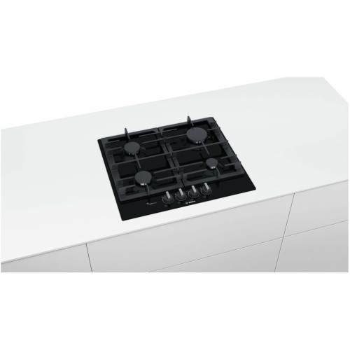 Газовая варочная панель Bosch PCP6A6B90R — встраиваемый бытовой прибор независимого типа подключения. Устройство оснащено четырьмя конфорками, мощность которых варьируется от 1 до 3 кВт, что позволяет использовать кухонную утварь разного размера. Маленькая горелка работает в экономичном режиме, а большая обеспечивает максимально интенсивное пламя. Интуитивно понятная механическая панель управления расположена в передней части корпуса. Поворотные регуляторы позволяют быстро выбрать один из 9 уровней мощности, а также активируют автоподжиг. Индикация сигнализирует о выбранном температурном режиме. Защитная система газ-контроля автоматически заблокирует подачу топлива в случае непредвиденных ситуаций, как, например, попадание жидкости на горелку. Варочная панель Bosch PCP6A6B90R проста в уходе: чтобы отчистить пятна и капли жира с эмалированной поверхности, необходимо применять мягкую салфетку, а также жидкие или гелеобразные бесщелочные моющие средства. Для удаления пригоревшей пищи рекомендуется использовать пластиковый скребок, который не повредит гладкое покрытие.