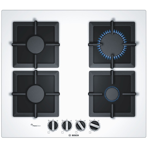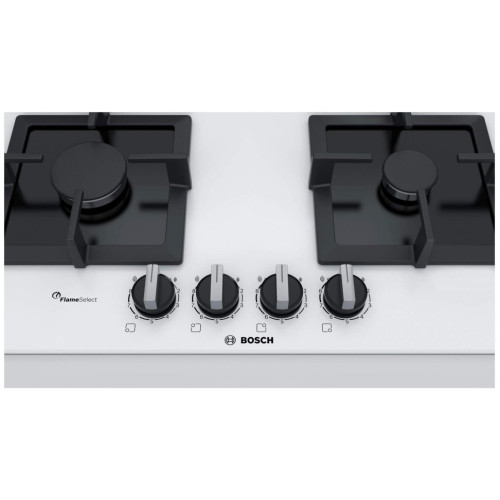 Serie | 6 Газовая варочная панель 60 cm. PPP6A2B20. Панель из закаленного стекла с функцией FlameSelect: достижение совершенных результатов благодаря 9 ступеням регулировки пламени. Закаленное стекло: простое обслуживание и стильный дизайн. Функция FlameSelect: для точной регулировки пламени на 9 разных ступенях. Опции схем встраивания: выбор между установкой заподлицо или в накладку. Функция FlameSelect. Готовка на газовой плите с новым уровнем точности. Готовить на газу — это всестороннее удовольствие. Но когда приходится регулировать огонь, начинаются сомнения: где же именно находится положение среднего огня у конфорки? Новые газовые плиты с функцией FlameSelect позволят забыть о сложностях регулировки и выбрать один из девяти запрограммированных уровней мощности, установив необходимую степень нагрева. Уровень 1 соответствует бережному тушению, а уровень 9 — кипячению. Идеальный результат одним движением руки. Закаленное стекло позволяет готовить, не думая о тяжёлой очистке варочной поверхности.