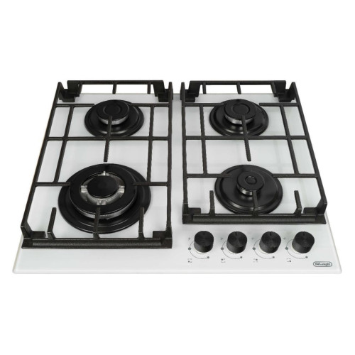 Описание Независимая встраиваемая газовая панель DeLonghi Grazia 6GW BB White устанавливается в столешницу толщиной от 30 мм, размеры ниши — 560х490 мм. Предусмотрено четыре конфорки, одна из них имеет мощность 3,5 кВт. Варочная поверхность изготовлена из закаленного стекла. Материал, из которого сделаны решетки, — чугун. В передней части корпуса находятся элементы механической системы управления. Автоматический электроподжиг встроен в поворотные ручки, можно использовать функцию «Минимальный огонь». Для безопасности предусмотрены аварийное отключение и газ-контроль. Если понадобится подсоединить баллон с газом, это можно сделать с помощью штуцера и жиклеров, которые входят в комплект.