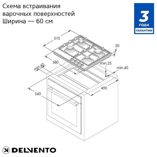 Газовая варочная панель Delvento V60V41B001