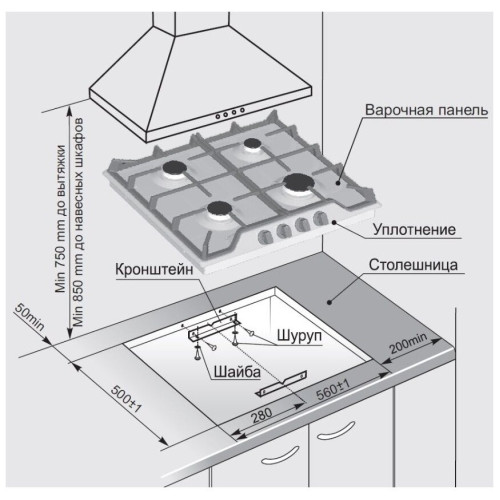 Глубина для встраивания (см) 50