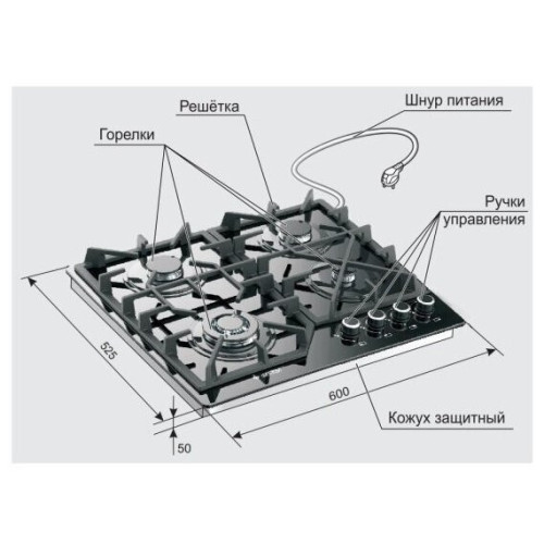 Бренд GEFEST Модель ПВГ 2232-01 К52 PartNumber/Артикул Производителя ПВГ 2232-01 К52 Длина упаковки (ед) 0.67 Ширина упаковки (ед) 0.59 Высота упаковки (ед) 0.19 Габариты упаковки (ед) ДхШхВ 0.67x0.59x0.19 Вес упаковки (ед) 14.5 Объем упаковки (ед) 0.075107 Тип поверхности варочная Тип управления механическое Установка рабочей поверхности независимая Материал поверхности закаленное стекло Материал решетки чугун Количество конфорок 4 Конфорка WOK ДА Тип левой ближней конфорки газовая Мощность левой ближней конфорки 3200 Количество контуров левой ближней конфорки двухконтурная Мощность левой дальней конфорки 1750 Количество контуров левой дальней конфорки одноконтурная Тип правой ближней конфорки газовая Мощность правой ближней конфорки 1000 Количество контуров правой ближней конфорки одноконтурная Тип правой дальней конфорки газовая Мощность правой дальней конфорки 1750 Количество контуров правой дальней конфорки одноконтурная Электроподжиг ДА Активация электроподжига в ручке Автоматический электроподжиг ДА Газ-контроль ДА Тип переключателей поворотные Суммарная мощность газовых конфорок 7700 Особенности Фиксированное положение «малое пламя». Цвет белый мрамор Ширина панели 600 Глубина панели 525 Высота панели 100 Размеры 600x525x100мм Ширина ниши для встраивания 554 Глубина ниши для встраивания 486 Размеры для встраивания 554x486 Вес 13.5 Ссылка на сайт поставщика/вендора https://gefest. com/catalog/vstraivaemaya-tekhnika/paneli-varochnye/panel-varochnaya-pvg-2232-01-k52/