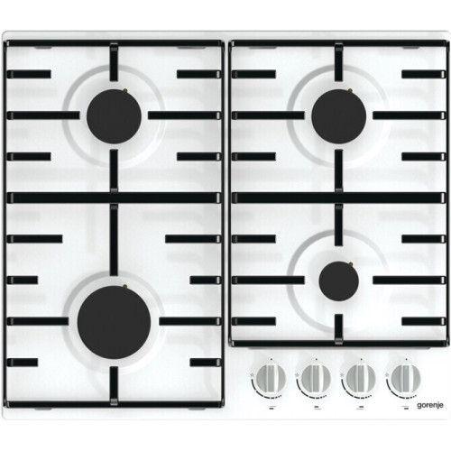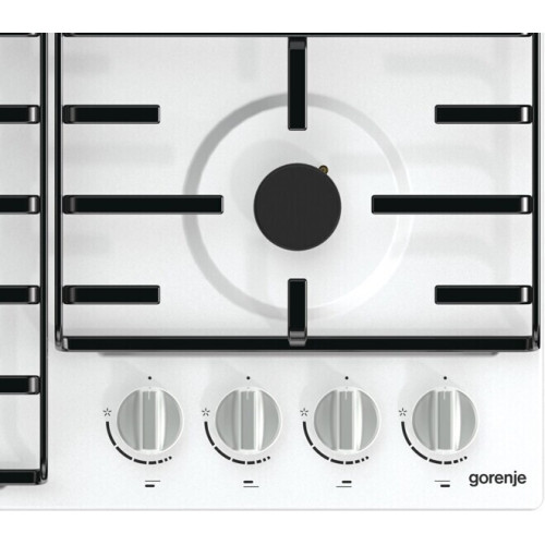 Независимая газовая варочная панель Gorenje G640W1 имеет белую поверхность и черные эмалированные решетки. Благодаря увеличенному расстоянию между горелками на держателях поместятся кастрюли и сковороды любых размеров. Большая горелка 3 кВт расположена спереди слева. Автоматический электроподжиг и газ-контроль делают эксплуатацию комфортной и безопасной. Ключевые преимущества: * Автоматический электроподжиг * Газ-контроль * Эргономичные переключатели