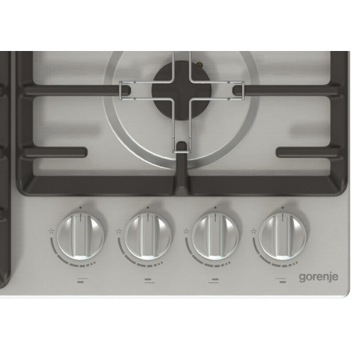 Дизайн: Независимая газовая варочная панель Gorenje G641ZX в цвете нержавеющая сталь будет отлично смотреться на кухне классического стиля. Чугунные решетки обеспечивают устойчивость тары и защищают варочную поверхность от царапин. Функционал: Механическое управление отличается надежностью и простотой. Поворотные эргономичные переключатели привычны и неприхотливы в уходе. Автоматический электроподжиг позволит забыть о спичках и зажигалках. Плюсы: Газ-контроль гарантирует безопасность использования, перекрывая подачу газа. В комплект входит решетка-подставка для турки, не дающая напитку расплескаться.