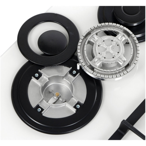 Варочная поверхность газовая Hyundai HHG 6436 WG белый Тип поверхности варочная Тип переключателей поворотные Установка рабочей поверхности независимая Материал поверхности закаленное стекло Материал решетки чугун Функции Автоматический электроподжиг ДА Активация электроподжига в ручке Электроподжиг ДА Конфорки Количество контуров левой ближней конфорки двухконтурная Количество контуров левой дальней конфорки одноконтурная Количество контуров правой ближней конфорки одноконтурная Количество контуров правой дальней конфорки одноконтурная Конфорка WOK ДА Мощность левой ближней конфорки 3500 Вт Мощность левой дальней конфорки 1700 Вт Мощность правой ближней конфорки 900 Вт Мощность правой дальней конфорки 1700 Вт Тип левой ближней конфорки газовая Тип левой дальней конфорки газовая Тип правой ближней конфорки газовая Тип правой дальней конфорки газовая Количество конфорок 4 Суммарная мощность газовых конфорок 7800 Вт Размеры 580x520x60мм Размеры для встраивания 560x490x60мм Минимальная толщина столешницы 30 мм Цвет белый Особенности Заводская настройка на газ 20 мбар
