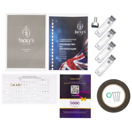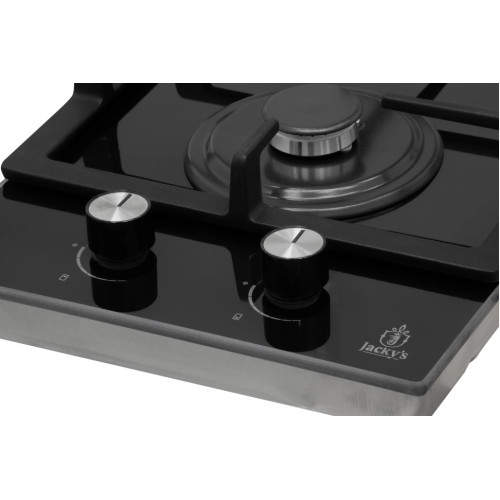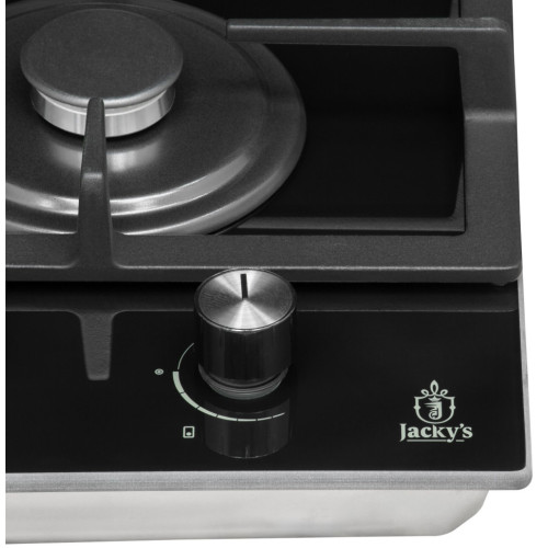 Газовая варочная поверхность Jacky’s JH GB333 выполнена из закаленного стекла Shott Ceran. Панель идеально впишется в Ваш интерьер, не занимая при этом много места. Мощность средней задней горелки (кВт): 2.9 Мощность средней передней горелки (кВт): 1 Преимущества: Итальянские горелки SABAF. Современная конструкция конфорки позволяет экономить потребление газа. Благодаря двойному кольцу пламени повышается производительность варочной поверхности, а подогрев и приготовление блюд происходят более равномерно. Чугунные решетки с амортизаторами. Чугун устойчив к деформации от высоких температур и хорошо очищается от застывшего жира и нагара. Благодаря амортизаторам поверхность находится в неподвижном состоянии, а на ее поверхности без труда размещается даже объемная и тяжелая посуда. Стекло SCHOTT CERAN . Инновационная технология немецкого производства (сделано в Германии). Данная стеклокерамика устойчива к резким температурным перепадам до 750 °C, она экологически безвредна, имеет большой запас прочности, низкое энергопотребление и проста в использовании. Эргономичные рукоятки дополняют дизайн варочной поверхности Газ-контроль позволит отключить подачу газа при случайном затухании пламени, обеспечивая защиту вашего дома