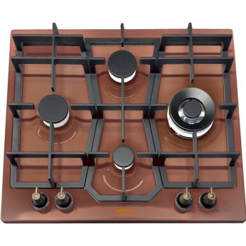 Варочная панель Korting HG 631 CTRC — модель редкого медного цвета в стиле ретро. Отличается ромбовидным расположением конфорок, которое очень удобно для использования. Черные чугунные решетки для посуды хорошо удерживают посуду. Электроподжиг включается поворотом переключателя бронзового цвета. Газ-контроль делает эксплуатацию безопасной. Ключевые преимущества: * Газ-контроль * Поворотные переключатели бронзового цвета * Конфорка Wok Схема: