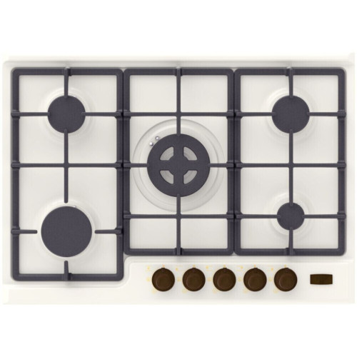 Korting HG 7115 CTRI — газовая варочная панель в белом цвете с пятью конфорками. Элегантная и функциональная модель дает возможность готовить большее количество блюд одновременно. Оснащена сверхмощной горелкой WOK, которая обеспечивает равномерный нагрев посуды. Управление осуществляется с помощью панели эргономичных поворотных регуляторов. Безопасность ежедневного использования гарантирует система «Газ-контроль», она останавливает подачу газа в случае, если пламя случайно погаснет. Электроподжиг позволяет без риска ожогов зажечь конфорку, достаточно повернуть и нажать регулятор. Материал поверхности практичен в уходе и устойчив к механическому и химическому воздействию. Ключевые преимущества: * Автоматический электроподжиг * Газ-контроль * Сверхмощная конфорка WOK