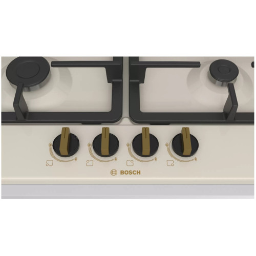 Газовая варочная панель Bosch Serie | 4 PGP6B1B90R позволяет использовать живой огонь, чтобы готовить повседневную еду и блюда для праздничного стола. Просто пользоваться - модель оборудована механической системой управления. В каждую ручку встроен автоматический электроподжиг: один поворот – и сразу же загорается пламя, а после этого вы можете отрегулировать его интенсивность. Стоит огню погаснуть, и подача топлива тут же перекрывается. За это отвечают специальные датчики. Стильно, надёжно и удобно. Эмалированная поверхность красиво выглядит и гармонично сочетается с прочными чугунными решётками, прикрывающими конфорками. Её сложно поцарапать, а при необходимости она легко очищается от загрязнений с помощью губки и обычного моющего средства.