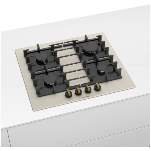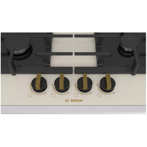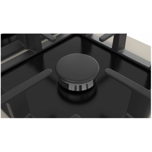 Встраиваемая газовая панель Bosch Serie | 6 PPP6B1B90R красива, практична и надёжна. Её рабочая поверхность изготовлена из закалённого стекла, которое легко очищается от брызг и выдерживает большие нагрузки. Максимальная устойчивость - свободно передвигайте тяжёлую посуду – массивные чугунные решётки будут прочно удерживаться на своих местах. Удобство и безопасность - каждая конфорка укомплектована системой автоматического розжига и термоэлектрическими датчиками, останавливающими подачу газа при утечке. Варочную панель можно устанавливать на одном уровне или поверх столешницы.