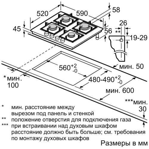 Ширина для встраивания (см) 56