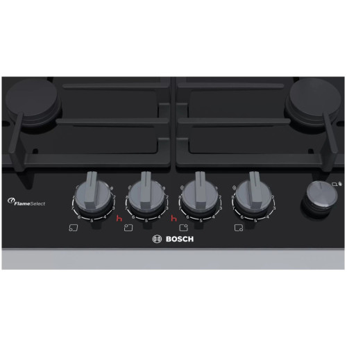Bosch Serie | 8 PRP6A6N70R – элегантная и простая в использовании варочная газовая панель. Четыре конфорки различной мощности позволяют не только готовить повседневную еду, но и воплощать в реальность сложные кулинарные замыслы. УДОБНОЕ УПРАВЛЕНИЕ Включить горелку можно одним поворотом регулятора – для этого предусмотрен автоматический электроподжиг. Интенсивность настраивается с помощью той же ручки, причём вам доступно девять уровней, а выбранный вариант отображается на цифровом дисплее. БЕЗОПАСНОСТЬ Если пламя по какой-либо причине гаснет, эффективная система газ-контроля тут же останавливает подачу топлива. Предусмотрена специальная кнопка, при нажатии на которую устройство сразу прекращает работу. ЛЕГКО УХАЖИВАТЬ Поверхность выполнена из стеклокерамики, и загрязнения с неё удаляются с минимальными затратами времени и усилий. Решётки, сделанные из чугуна, можно снять и вымыть в посудомоечной машине.