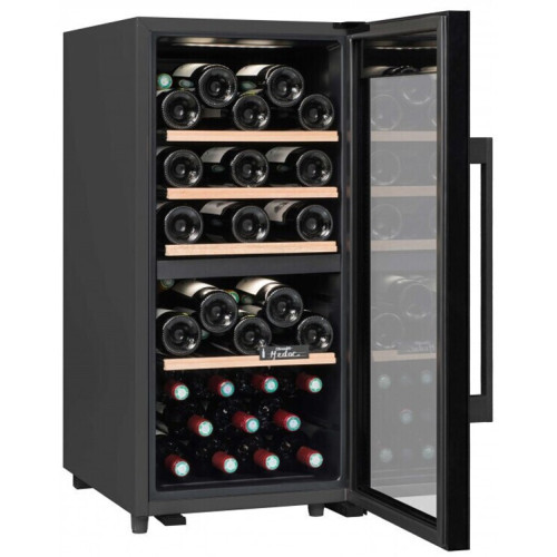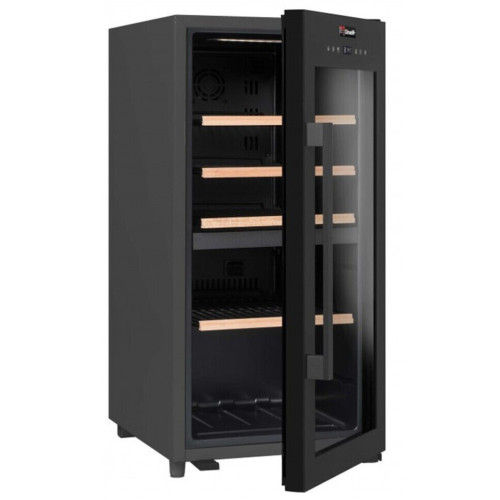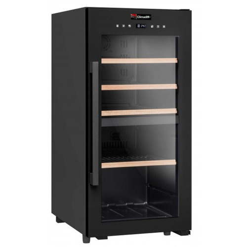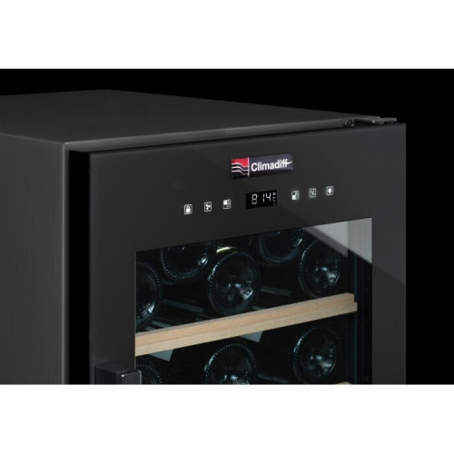 Двухзонный винный шкаф Climadiff CD41B1 позволяет разместить 41 бутылку (типа Бордо) при оптимальной для разных напитков температуре. Интересное дизайнерское решение дает возможность устанавливать шкаф как на домашней кухне, так и в рабочем кабинете. Температурный режим +5..+20 °C (верх. +5..+12/ниж. +12..+20 °C) * Две температурные зоны с индивидуальной настройкой * 4 металлические выдвижные полки с декором из дерева (бук) * Большая ручка под цвет дверцы * Антивибрационная система (изоляция корпуса пенополиуретаном, компрессор на специальных сайлентблоках ) * Дверца с двойным стеклом и УФ-фильтром * Сенсорная панель управления с цифровым дисплеем на дверце * LED подсветка, отключаемая * Активный вентилятор для поддержания равномерной температуры внутри винного шкафа * 2 ножки с регулировкой высоты * Блокировка настроек от детей