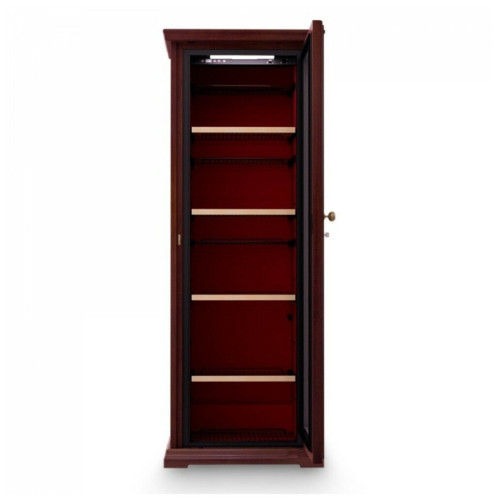 Шкаф винный IP Industrie CEX 501 CU устанавливается в винных бутиках, гостиницах, ресторанах, квартирах для правильного и эстетичного хранения и охлаждения вина. Модель оснащена электронным термостатом, цифровым дисплеем, подсветкой и замком. Корпус выполнен из крашенного металла, встроенного в деревянный короб, дверь - из двойного стекла с защитой от ультрафиолетовых лучей, полки - из крашенного металла. Особенности: Система статического охлаждения Программа отогрева Автоматическое размораживание Компрессор: SECOP (Danfoss) Хладагент: R134a Характеристики: Количество полок: Стандартная: 4 Полу-полка: 5 Максимальная потребляемая мощность: 0,24 кВт Диапазон влажности: 60 / 70% Комнатная температура: от 0 до 36 °C Цвет: N - орех (в наличии) V - венге (в наличии) R - дуб C - вишня Опции: 2 температурные зоны Цвет по образцу