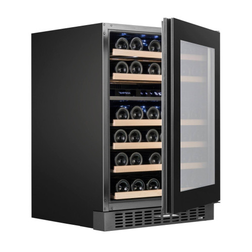 Винный шкаф Temptech OX60DRB предназначен для охлаждения, хранения и демонстрации бутилированного вина. Модель оснащена сенсорной панелью с дисплеем для регулировки температуры и освещения, 6 полками, дверцей со встроенной ручкой, фильтром с активированным углем и белой светодиодной подсветкой. Дверца выполнена из двухслойного стекла, заполненного аргоном, и с защитой от УФ-лучей, передняя панель - из черного стекла, полки - из бука. Особенности: * Независимая регулировка температуры в каждой зоне * Оптимальная влажность * Стабильная температура * Вентиляторы, обеспечивающие циркуляцию воздуха * Инверторный бесшумный компрессор * Специально разработанные ножки - гасители вибрации * Антивибрация на полках * Встраивается под столешницу или устанавливается как отдельностоящий * Хладагент: R600a * Энергетический класс: F * Бесшовная интеграция в кухню * Сертифицировано RoHs, CE, CB, ERP