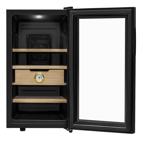 Если вы любитель сигар, то хорошо знаете, как важно хранить сигары в оптимальных условиях влажности. Хьюмидор Meyvel MC-48BT отлично подойдёт для этой задачи. Стильный дизайн будет лаконично смотреться с любым интерьером. При небольших размера объём составляет 48 литра и позволяет хранить большую коллекцию сигар. В комплекте идут 3 полки и выдвижной ящик, которые можно располагать на разных уровнях. Полки и ящик изготовлены из дерева испанского кедра - отлично подходят для поддержания оптимального уровня влажности и не портятся во время эксплуатации. Дверца с двойным стеклом имеет защиту от УФ лучей и не пропускает излишнего излучения. В ящике хьюмидора Meyvel MC-48BT встроен гигрометр, с помощью которого удобно отслеживать уровень влажности. Панель управления с электронным дисплеем позволит настроить необходимую температуру в диапазоне от +10C° до +18C°, включить или отключить внутреннее освещение. Уровень шума не превышает 39дБ. Отличительные особенности: * Внутренний объём 48 литров; * температурный диапазон от +10С° до +18С°; * внутренняя подсветка; * выдвижной ящик; * гигрометр; * уровень шума 39 дБ; * электронная панель управления;